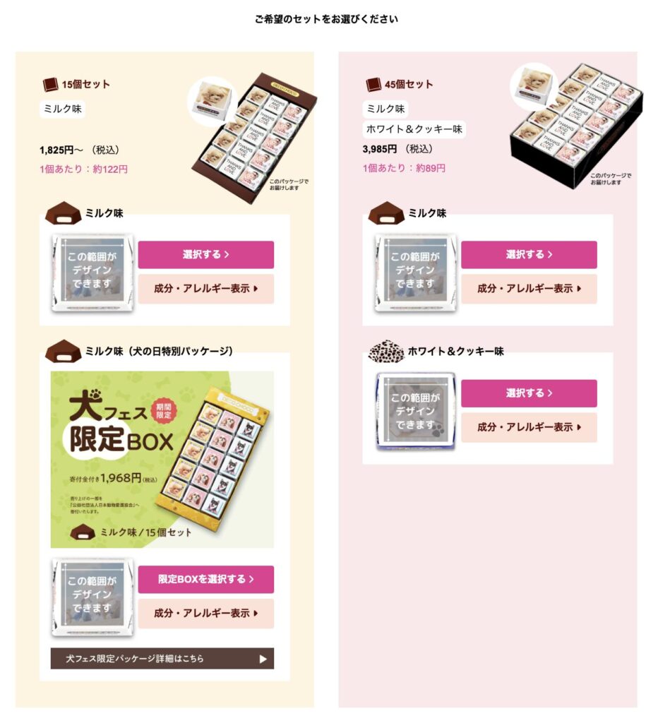 デザインを始める前に、オリジナル化するチロルチョコの 味とパッケージ数 を選びます。