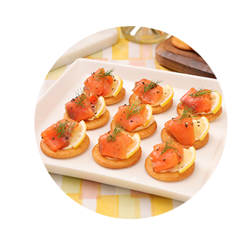 おやつ・おつまみ・料理のベースなど、どんなシーンにも合う万能クラッカー。「リッツパーティー」と呼ばれる家庭向けレシピ提案の中心商品でもあります。