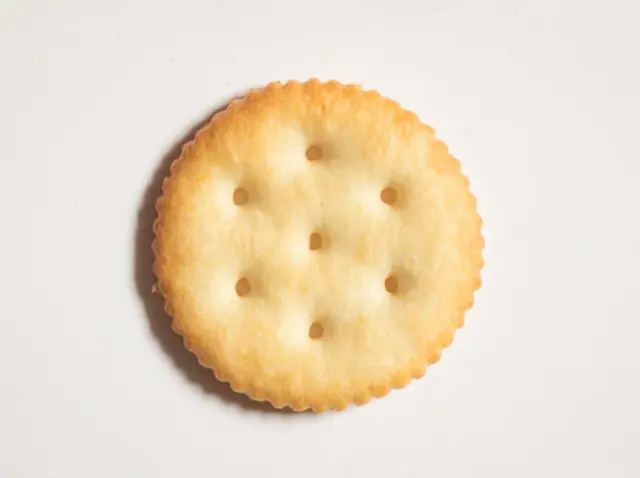 リッツ(Ritz)をよく見ると、表面に7つの小さな穴が開いています。これは「見た目のデザイン」ではなく、焼成工程のための機能的な穴。もしこの穴がなければ、クラッカーが焼くときに膨らみすぎて割れてしまうため、ガスを逃す“通気孔”として設けられています。さらにこの穴のおかげで、サクッとした軽い食感と均一な焼き色が生まれるのです。